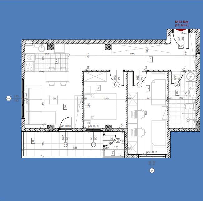 | 3. | Dnevna soba | parket | 13.37m² | 12.97m² |